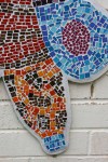 An outdoor mosaic was designed and created by a nursery group. The terms topic was “Space” so students created their own moon creature surrounded by three stars for their playground wall. To see further information about the project please click on the blue link below